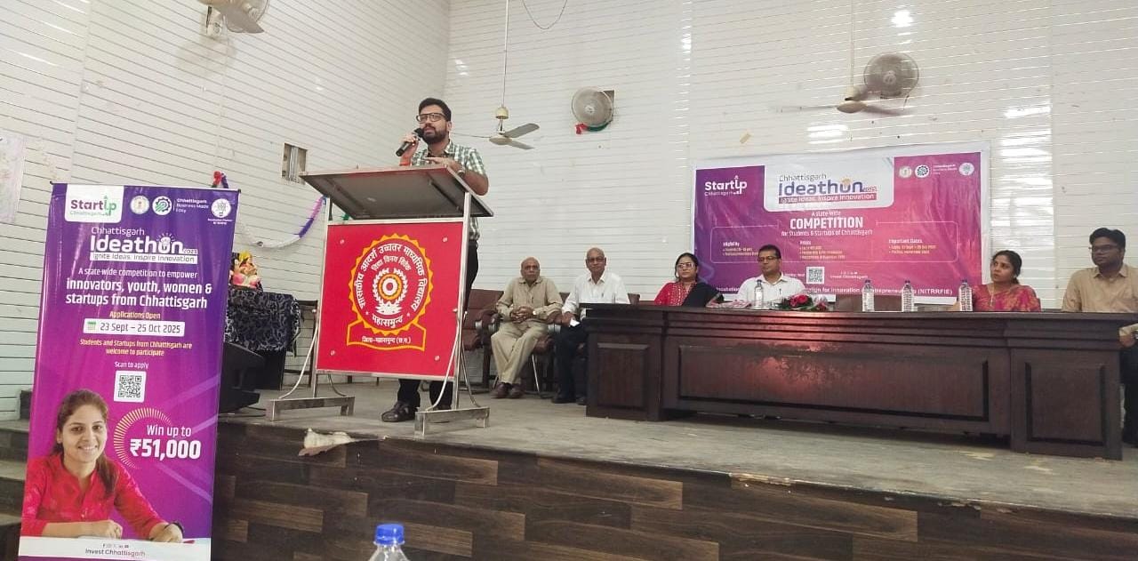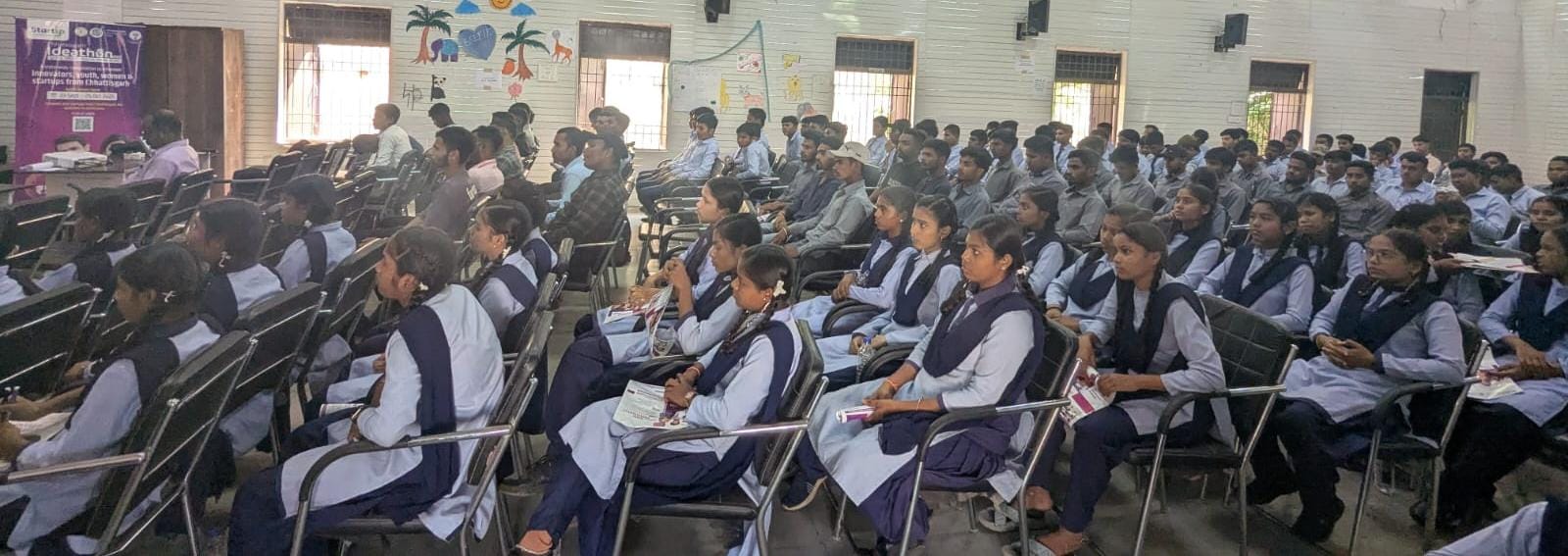 छत्तीसगढ़ आइडियाथान 2025 के अंतर्गत युवाओं में नवाचार की भावना को बढ़ावा देने, स्टार्टअप एवं इनक्यूबेशन सहायता की जानकारी प्रदान करने तथा विभिन्न योजनाओं की जागरूकता फैलाने के उद्देश्य से वाणिज्य एवं उद्योग विभाग छत्तीसगढ़ शासन तथा एनआईटी रायपुर आरआरएफआईई (NITRR-FIE) के संयुक्त तत्वावधान में एक दिवसीय आउटरीच कार्यक्रम का आयोजन स्वामी आत्मानंद उत्कृष्ट हिंदी माध्यम उच्चतर माध्यमिक विद्यालय, महासमुंद के सभागार में किया गया।
