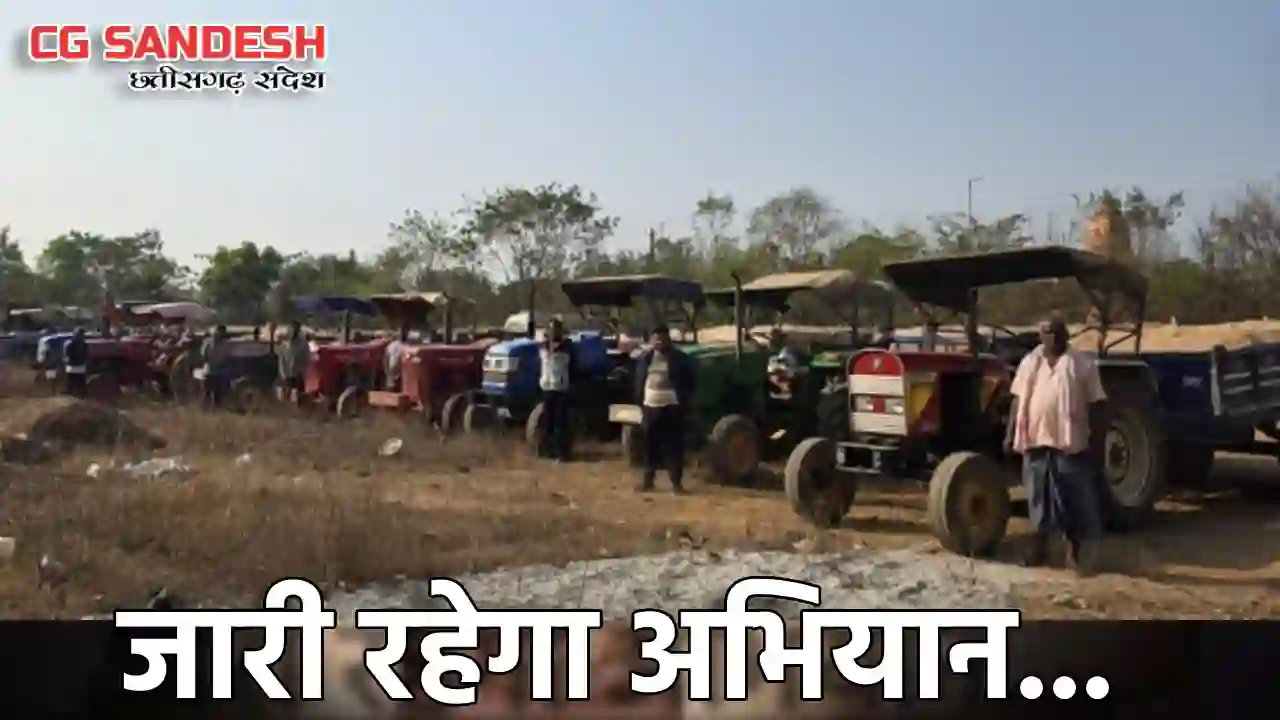 CG : रेत के अवैध उत्खनन और परिवहन के मामले में कार्रवाई, 12 ट्रैक्टर जब्त