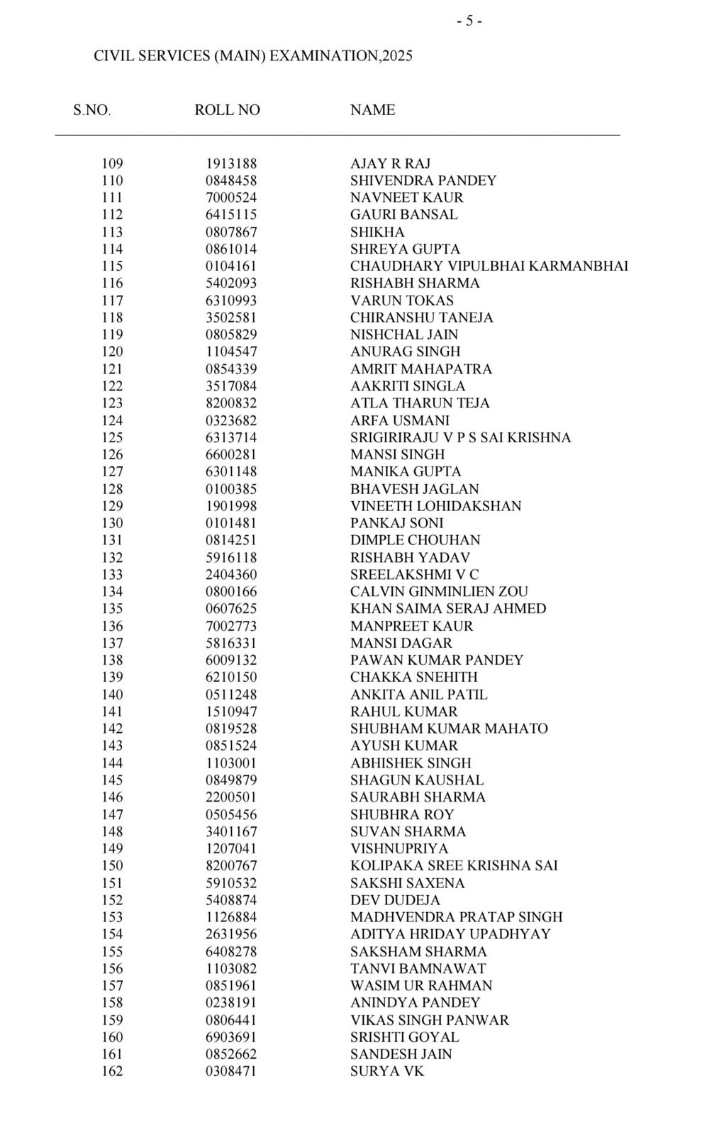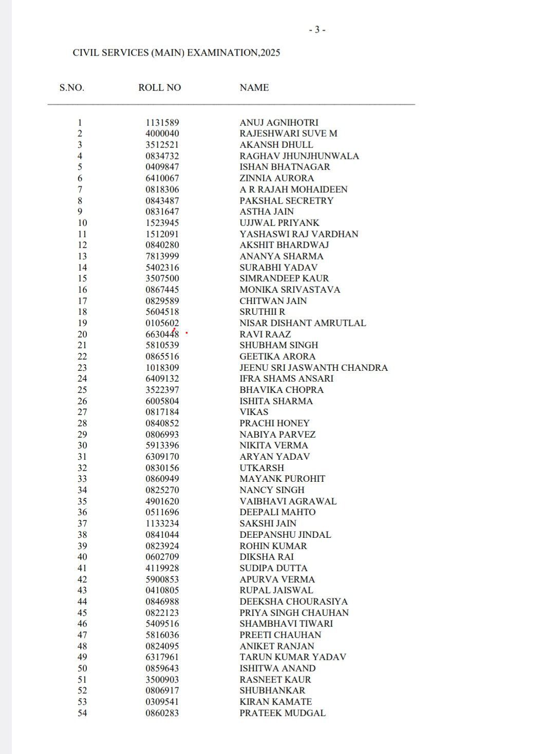 डेस्क। संघ लोक सेवा आयोग (UPSC) ने आज शुक्रवार को यूपीएससी सिविल सेवा 2025 के अंतिम परिणाम जारी कर दिए हैं. अनुज अग्निहोत्री ने इस प्रतिष्ठित परीक्षा में पहला स्थान हासिल किया है. अनुज के बाद राजेश्वरी सुवे एम और आकांश धुल शीर्ष 3 में जगह बनाने में कामयाब रहे हैं.