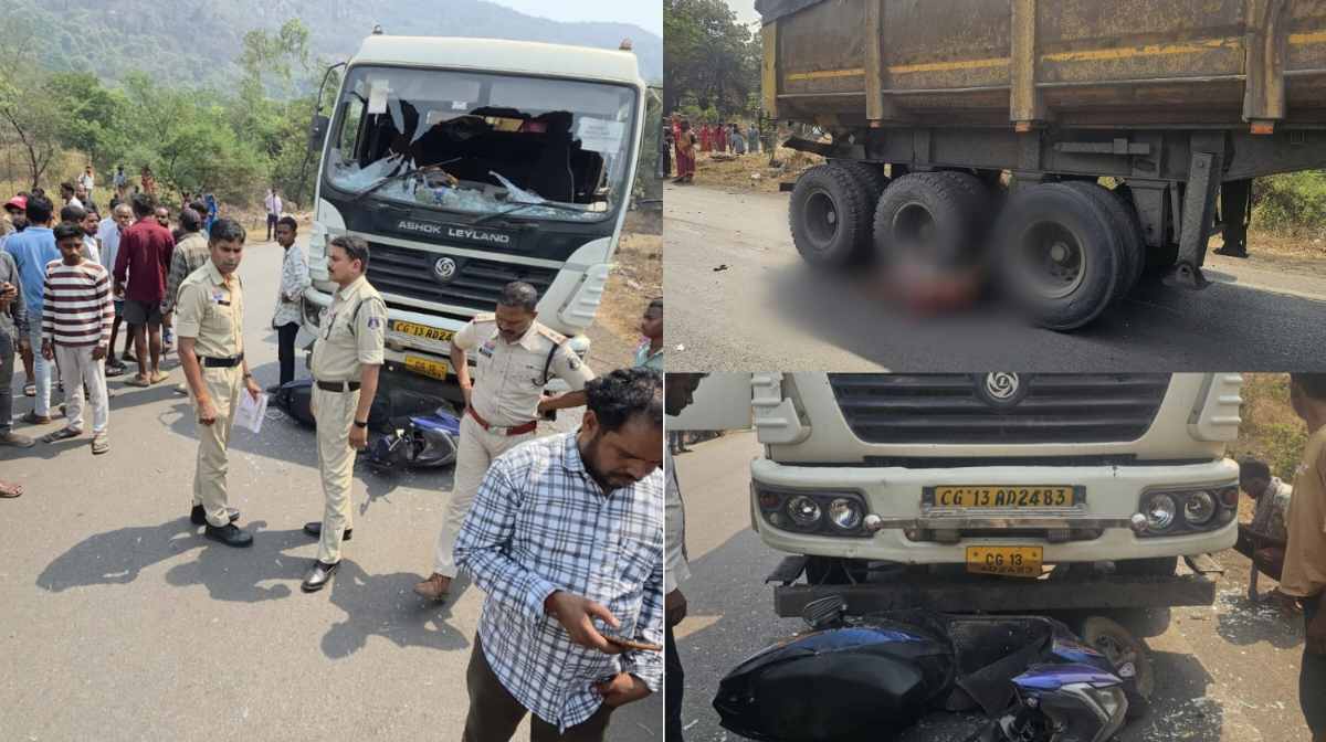 CG : तेज रफ्तार ट्रेलर की चपेट में आने से आंगनबाड़ी कार्यकर्ता की दर्दनाक मौत, पति और बच्चा घायल