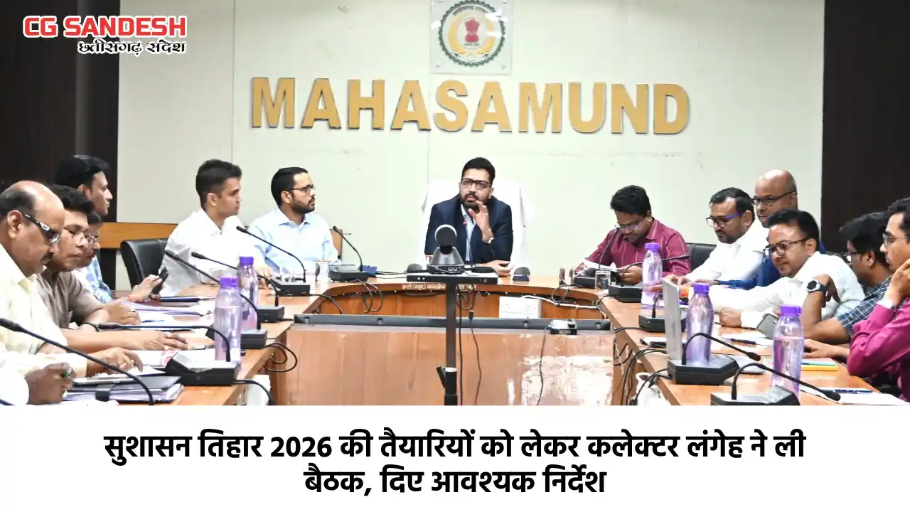 छत्तीसगढ़ शासन द्वारा आमजन की समस्याओं के त्वरित एवं प्रभावी निराकरण के उद्देश्य से इस वर्ष भी “सुशासन तिहार 2026” के आयोजन व्यापक पैमाने पर किया जाएगा। इस संबंध में कलेक्टर विनय लंगेह ने गुरूवार को कलेक्ट्रेट सभाकक्ष में जिला अधिकारियों की बैठक लेकर इस अभियान के सफल आयोजन को लेकर विस्तृत दिशा-निर्देश दिए हैं। इस अवसर पर पुलिस अधीक्षक प्रभात कुमार, वनमंडलाधिकारी मयंक पांडेय, जिला पंचायत सीईओ हेमंत नंदनवार, अपर कलेक्टर सचिन भूतड़ा, रवि साहू सहित जिला स्तरीय अधिकारी मौजूद थे।