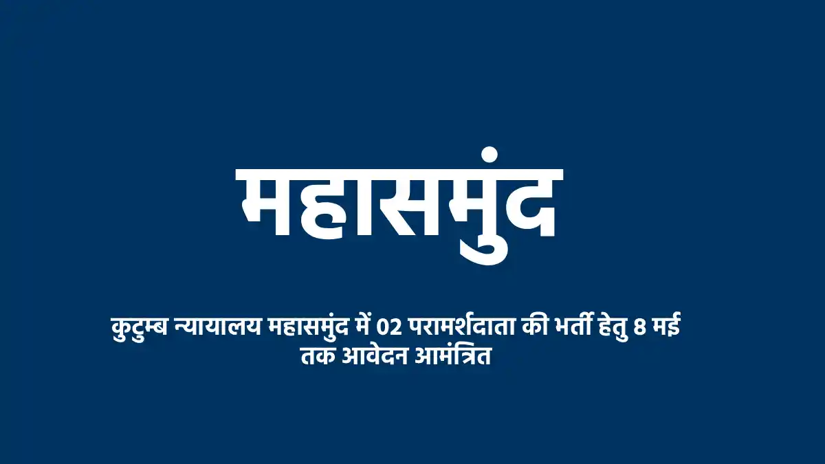 कुटुम्ब न्यायालय महासमुंद में 02 परामर्शदाता की भर्ती हेतु 8 मई तक आवेदन आमंत्रित