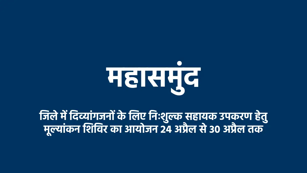 महासमुंद जिले में दिव्यांगजनों के लिए निःशुल्क सहायक उपकरण हेतु मूल्यांकन शिविर का आयोजन 24 अप्रैल से 30 अप्रैल तक