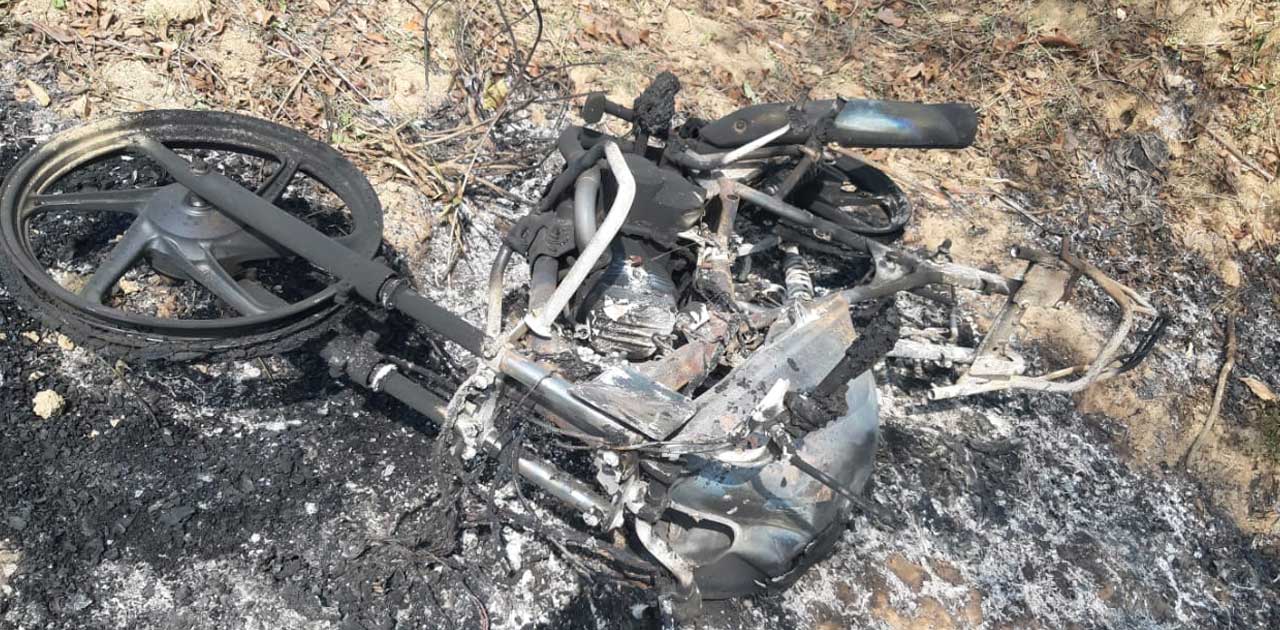 जिसे पूछने पर बताया कि ग्राम कोल्दा में तिराहा में मेरा मोटर सायकल क्रमांक CG06GN 0755 को रोककर मुझे राजू साहू (मोटर सायकल मिस्त्री) अश्वनी ठाकुर,भीखम चक्रधारी, संजू ठाकुर के द्वारा पैसा की जबरदस्ती मांग किये नही दूंगा बोला तो उन लोगों ने मुझे म बहन की गंदी गंदी गाली कर डण्डा एवं लोहे की हथियार से सिर, आंख, नाक , चेहरा, जांघ में मारपीट किया और जान से मारने की धमकी दिये है. तब जान बचाकर मो0सा0 से घर आ रहा था ये लोग भी मो00सा0 से पीछे पीछे आ रहे थे. अचानक मो0सा0 अनियंत्रित होने से ग्राम फरौदा में मोड के पास खेत में गिर गया मो0सा0 भी खेत में गिरा है. कुछ दुर में जाकर झाडी के पास छुप गया, उसके बाद वे लोग मोबाईल टार्च से इधर उधर ढुंड रहे थे. उससे मेरा मो0सा0 को ये लोग आग लगा दिये.