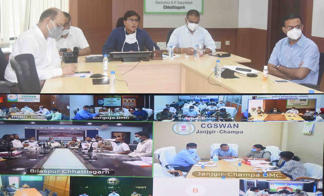 मुख्य सचिव आर. पी. मण्डल ने आज चिप्स कार्यालय में वीडियो कॉन्फ्रेंसिंग के माध्यम से धान खरीदी की तैयारी तथा बारदाने की व्यवस्था, किसान पंजीयन एवं गिरदावरी की समीक्षा, वर्मी टैंकों का निर्माण, वर्मी टैंकों का भराव, सीअीटी एवं डी कम्पोजर्स का उपयोग, वर्मी टैंकों में वर्म की उपलब्धता एवं उपयोग, पैक्स के माध्यम से वर्मी कम्पोस्ट का परीक्षण, पैकिंग एवं विक्रय, उत्कृष्ट अंग्रेजी माध्यम स्कूल, आदिवासियों के प्रकरणों की वापसी एवं कोविड-19 के संक्रमण की रोकथाम आदि की विस्तृत समीक्षा की और अधिकारियों को दिशा-निर्देश दिए। वीडियो कॉन्फ्रेंसिंग में संभागायुक्त, पुलिस महानिरीक्षक, कलेक्टर्स, पुलिस अधीक्षक, मुख्य कार्यपालन अधिकारी, जिला पंचायत तथा वन मण्डलाधिकारी शामिल हुए।