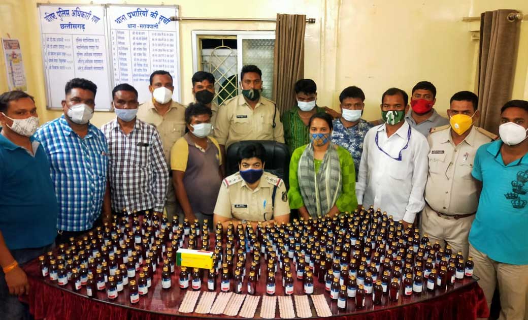 नशे के खिलाफ इस मुहिम के तारतम्य में जिले के समस्त थाना एवं चौकी प्रभारियों को लाक डाउन की अवधि में जिले में अवैध मादक पदार्थों के बिक्री एवं परिवहन पर अंकुश लगाने हेतु निर्देशित किया गया था जिसके परिपालन में अतिरिक्त पुलिस अधीक्षक मेघा टेम्भुलकर साहू तथा अनुविभागीय अधिकारी पुलिस(सरायपाली) विकास पाटले के मार्गदर्शन में थाना प्रभारी सरायपाली निरीक्षक वीणा यादव एवं स्टाफ द्वारा सरायपाली थाना क्षेत्रांतर्गत अवैध शराब, मादक पदार्थो की बिक्री एवं परिवहन करने वाले संदेही व्यक्तियों पर सतत निगाह रखी जा रही है इसी दौरान दिनांक 03/05/21 को जरिये मुखबीर से सूचना मिला कि सारंगढ रोड़ में सारंगढ बरमकेला से दो मो0सा0 में प्रतिबंधित दवाईयां कफ सीरफ एवं टेबलेट लेकर सरायपाली तरफ आ रहे हैं कि सूचना पर हमराह स्टाफ व गवाह के रवाना होकर सारंगढ बार्डर ग्राम पोड़ापाली के पास नाकाबंदी किये कुछ समय पश्चात सारंगढ रोड़ तरफ से सरायपाली की ओर दो मो0सा0 आते दिखाई दिये जिनको हाथ से इसारा कर रोकने की संकेत दिया गया जो पुलिस को देखकर मो0सा0 को मोड़कर भागने की कोशिश करने लगे। जिन्हें दौड़ाकर पकड़ा गया।