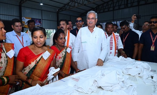 रायपुर। मुख्यमंत्री भूपेश बघेल ने ईटपाल स्थित बीजापुर गवर्नमेंट फैक्ट्री का लोकार्पण किया। इस अवसर पर उन्होंने गारमेंट फैक्ट्री में चल रहे कपड़ा निर्माण के कार्यों का निरीक्षण भी किया और यहां कार्यरत महिलाओं से बात की। सीएम ने फैक्ट्री से हरी झंडी दिखाकर बाजार के लिए तैयार उत्पादों की पहली खेप को रवाना किया