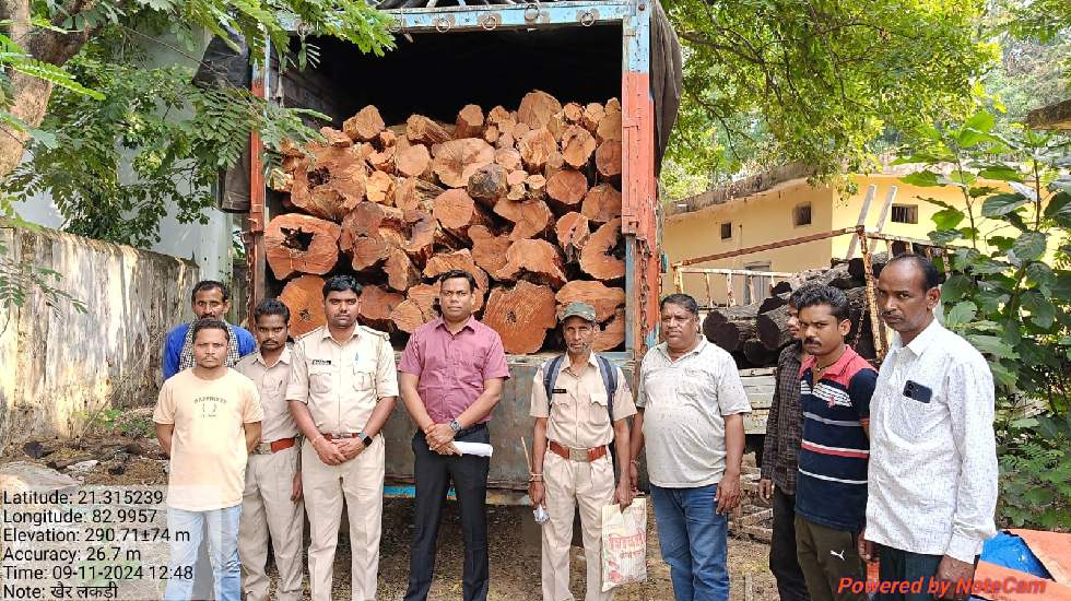 सरायपाली : ओडिशा से हरियाणा जा रही लाखों रुपये की खैर लकड़ी को वन विभाग ने पकड़ा