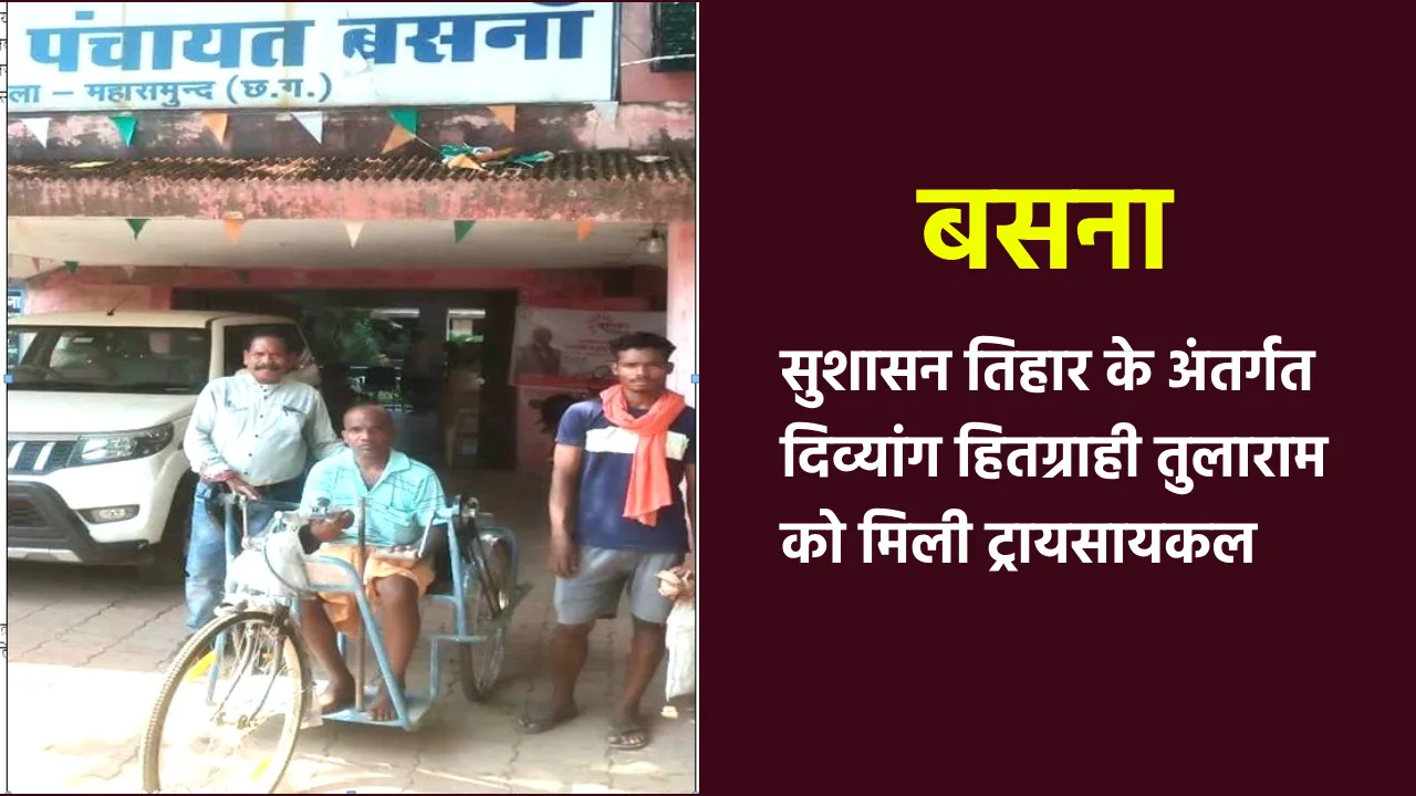 बसना : सुशासन तिहार के अंतर्गत दिव्यांग हितग्राही तुलाराम को मिली ट्रायसायकल